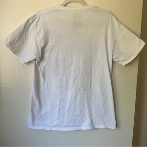 Embrace positivity with this stylish white graphic tee featuring a vibrant mushroom and butterfly design. Perfect for casual outings.