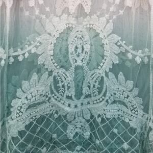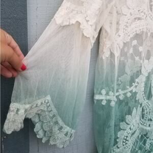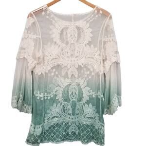 White Green Lace Long Sleeve Sheer Top Cover Up Ombre S