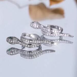 Silver viper White Green eyes Zircon Stone Snake Hoop Earrings Silver Wedding, party.