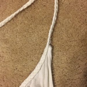 White H&M Racerback Tank Top, size large. EUC only mild fraying along strap line (see picture above). Unique keyhole racerback with braided rope straps and along neckline, super cute!