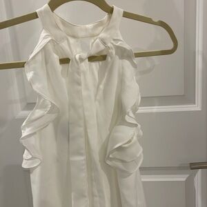 Flowy white dress with tie neck, slight v back