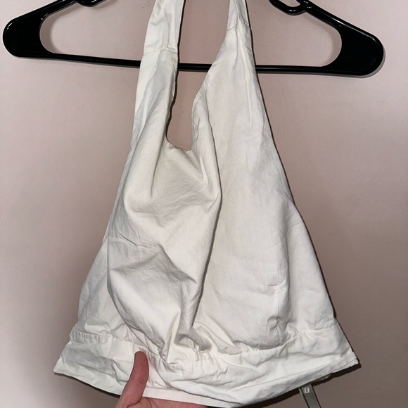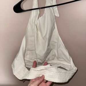Free People cropped white halter top. Perfect for casual outings or dress it up. Soft and comfortable fabric. Better for someone with a larger chest