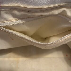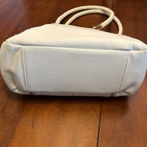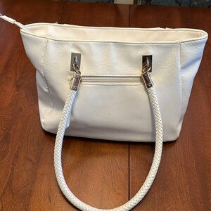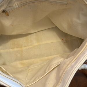 White Handbag. Signs of wear and staining as depicted in photos. Sold as is. No brand