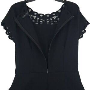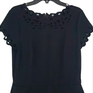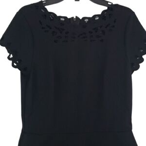 White Hause Black Market~Woman Size 0~Black Fit/Flare Lazer Cut Dress Pockets.