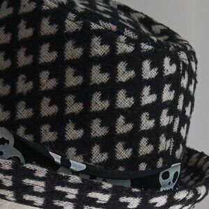 White Hearts on Black Wool Porkpie Hat with Skull Band NWT ~ Very Cute!
