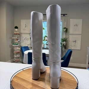 White Heeled Knee-High Boots | Size 6.5