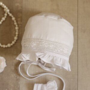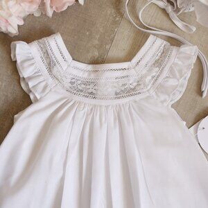 White Heirloom Dress & Bonnet Set Flutter Sleeve Lace Inlay Boutique 6 Month NWT