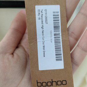 White High Neck Cut Out Midi Dress - Bought from Boohoo in size UK 16, but I'm a US 12 so it fits fine. Originally got it for myself as my engagement party dress and it never wore it again because now I have way too much white in my closet! It's made from recycled material bc it's from Boohoo's eco-friendly line so the material isn't silky or anything, it just feels like regular cotton.