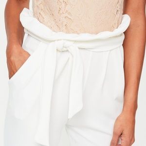 Must have pants!These trousers pair perfect with fitted tops and bodysuits. Features slim tapered leg fit and paperbag style waist with matching tie.