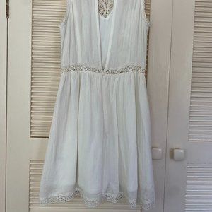 White lace above the knee dress with high neck and open back. Size small. Gently worn. Boutique purchased. En Creme brand.