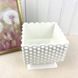White Hobnail Bowl, Small Pedestal Bowl, Decorative Bowl with Scalloped Edge