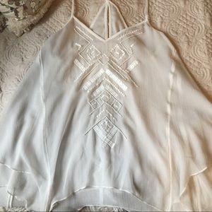Worn ONCE! White, flowy and light, Hollister tank top. Gauze -type fabric. Beautifully beaded detailing. All beading intact. XS but fits like a small.