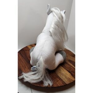 Its mane could use a gentle brushing, but overall it’s very clean and cuddly. Please note: there’s a visible sewn area on the top/back of the horse—I've included a close-up photo for reference.