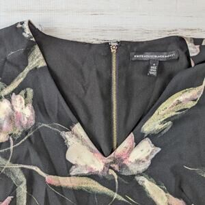 White Hours Black Market Statement Sleeve Floral Print Black Dress Sz 6