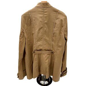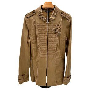 Military Style Jacket in Tan With Rosebud Shoulder Size 12 in like new condition now Tags Purchased from thrift (AS IS CONDITION) Light box used to give you the best views of items condition, NO RETURNS. Wash before Wearing.