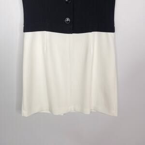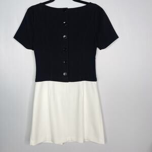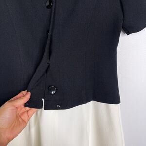 White House Black Market 0 Black Cream Colorblock Button Back Dress Short Sleeve