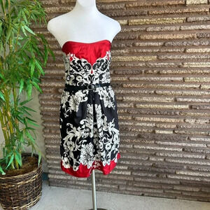 White House Black Market 100% Silk Red and Black Strapless Party Dress Size 12