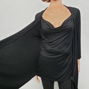 White House Black Market 2-Fer Layered Top Cardigan 2 in 1 Drapey Black M
