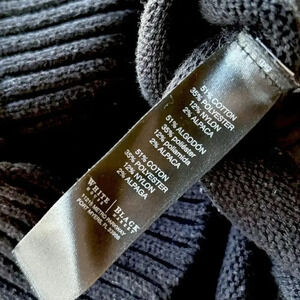 This White House Black Market sweater is a classic piece for your wardrobe. The Alpaca blend material makes it warm and comfortable to wear, while the tight-knit striped pattern adds a touch of classic elegance. The off-the-shoulder neckline and loose fit sleeves create a relaxed, yet stylish look that is perfect for travel or casual occasions.