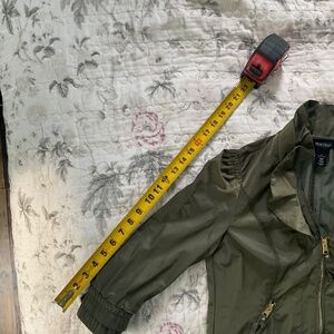 White House Black Market Army Green Ruffle Neckline Cropped Bomber Jacket Size 2