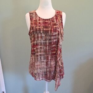 White House Black Market Asymmetrical Ruffled Tank Top Brown And Tan Size M