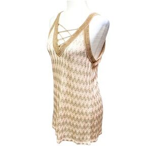 Stylish chevron pattern. Sleeveless design. Lace-up neckline. Perfect for casual wear.