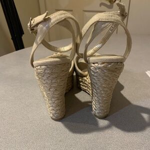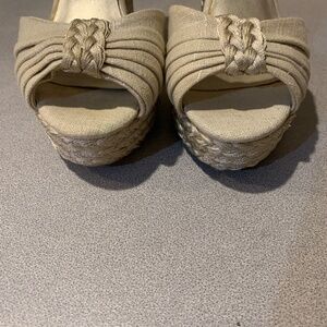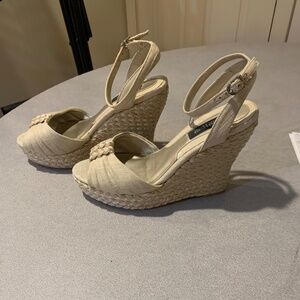 White House Black Market Beige Platform Wedge Sandals sz 8 M