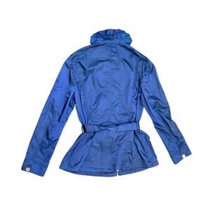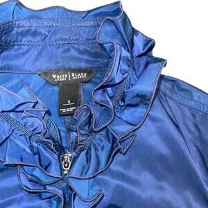 White House Black Market Belted Blue Nylon Ruffle Jacket coat Zip up Size XS