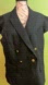 Chic black blazer with double-breasted design. Features striking gold buttons. Ideal for a polished look.