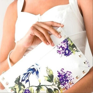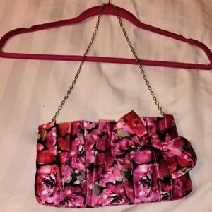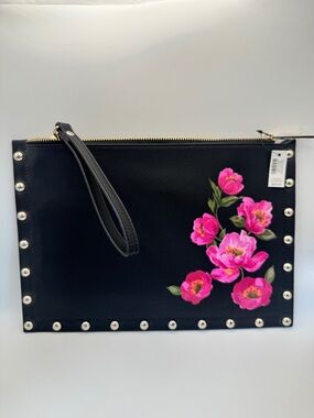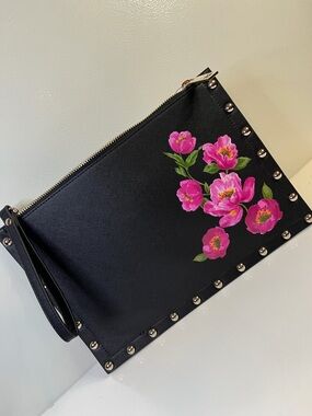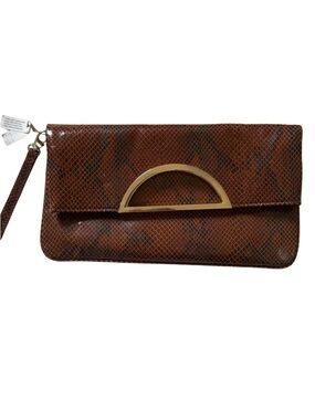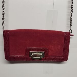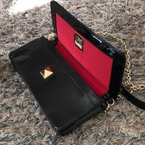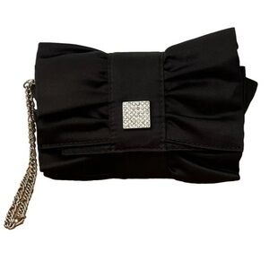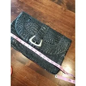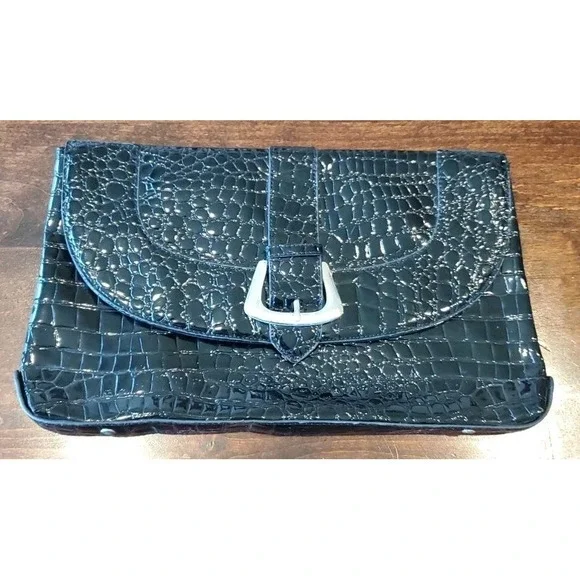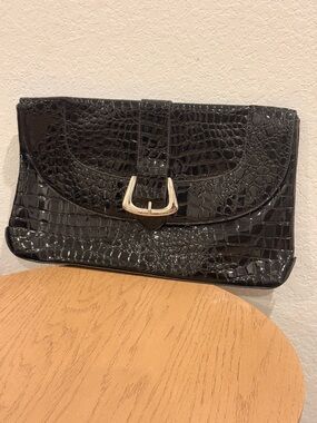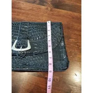 White House Black Market Black Croc Purse Clutch Handbag Silver Buckle Large