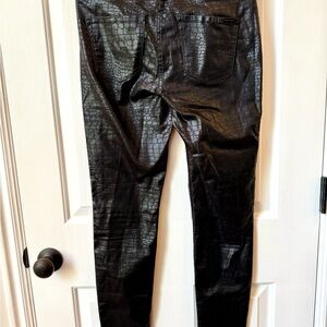 Chic black skinny jeans. Croc-embossed texture. Sleek and stylish design.