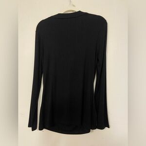 Chic black blouse with drape neck. Long sleeves. Perfect for versatile styling.