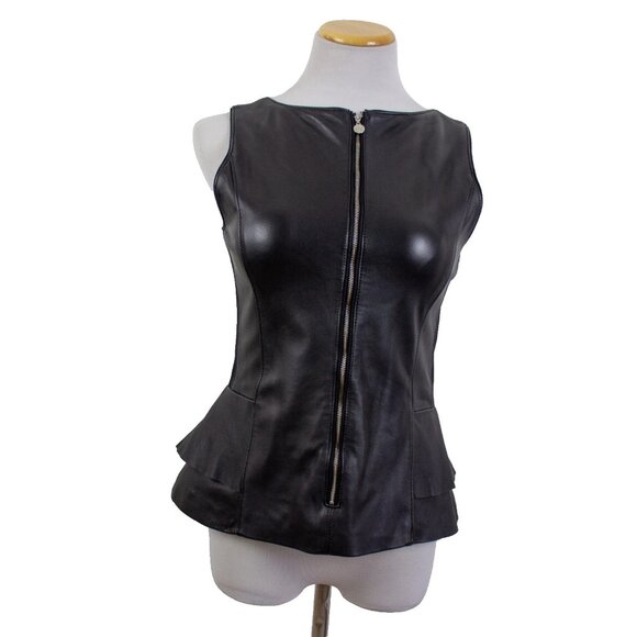 White House Black Market Black Genuine Leather Bodice Top Sz 6