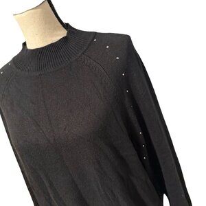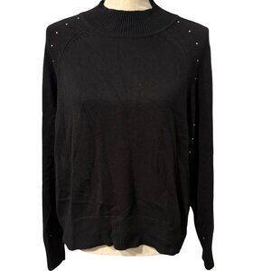 White House Black Market Black Mock Neck Sweater with Silver Accents Size L