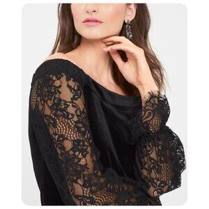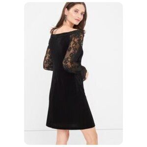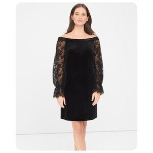 White House Black Market Black Off The Shoulder Velvet Lace Shift Dress sz 8