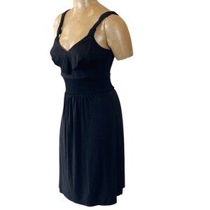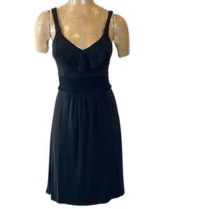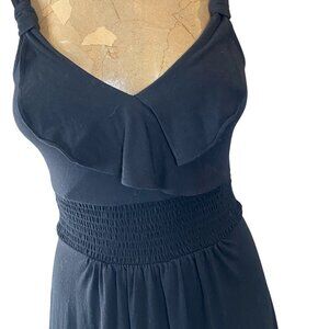 White House Black Market Black Ruffle V-Neck Sundress Smock Waist XXS #340E