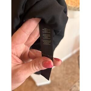 This White House Black Market dress is a timeless piece perfect for any occasion. The off-the-shoulder neckline and collarless design add a touch of elegance, while the tiered scallop detailing and zip closure create a unique and playful look. The knee-length A-line dress is made of polyester and is machine washable for easy care. It comes in black and is a size 8 for women. This dress is perfect for weddings, parties, formal events, or even business settings. The dress is not vintage, personalized, or handmade, but it still has a classic theme that will never go out of style. It was made in China and has no modifications.