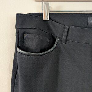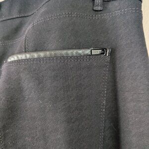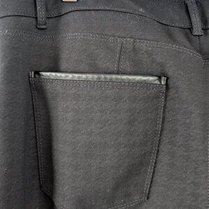 White House Black Market black skinny ankle pant with zippered leg and faux leather trim. Black with a subtle houndstooth print. Zipper and button closure with a 5 pocket design. Thick and soft with stretch.