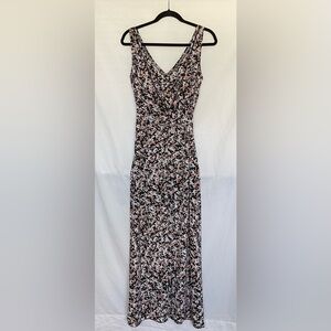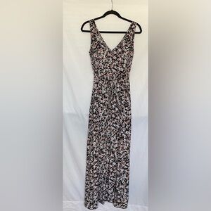 This chic sundress from White House Black Market is perfect for a wedding guest or a night out, featuring a sleeveless design and a flattering V-neckline. The dress boasts a high-low hem with a slit, adding a touch of elegance and movement. Its lightweight fabric in a striking black color ensures a graceful drape for any occasion.