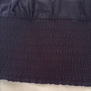 This elegant black tank top from White House Black Market features a chic halter neckline with smocked detailing, offering a sophisticated look. The sleeveless design and soft, stretchy fabric ensure comfort and style, making it a versatile addition to any wardrobe.