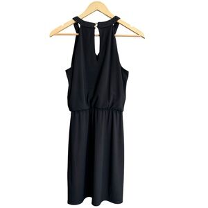 White House Black Market Black Stretchy Elastic Waistband Halter Dress Sz XS 197