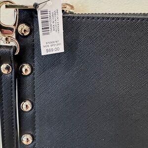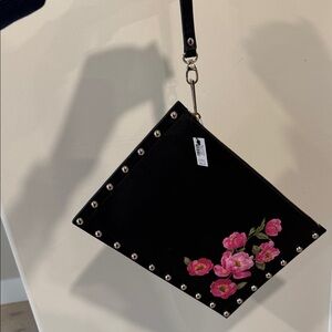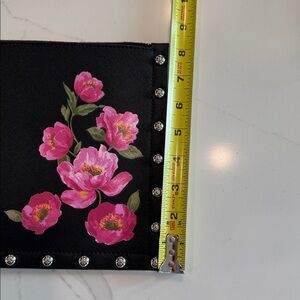 White House Black Market Black Studded Clutch with Pink Floral Design