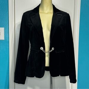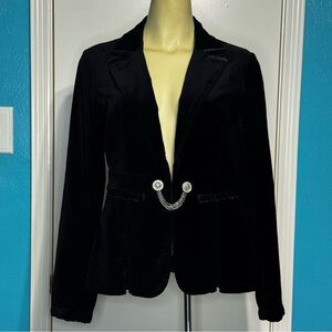 White House Black Market Black Velvet Blazer Rhinestones Chain Accent Size 4 EuC