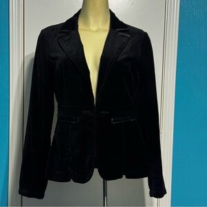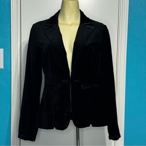 Elevate your wardrobe with this sleek black velvet blazer from White House Black Market, perfect for adding a touch of sophistication to any outfit. Crafted with precision, this blazer offers a tailored fit that enhances your silhouette. Ideal for both professional and formal occasions, it seamlessly combines elegance with versatility.