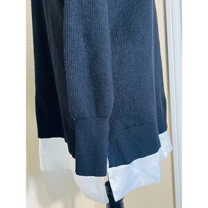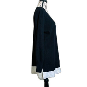 White House Black Market Black White Tunic Sweater Shirt Large V Neck Layered