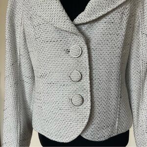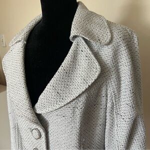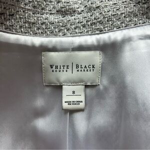 White House Black Market Black White Tweed Three Button Blazer Notched Lapel Sz8