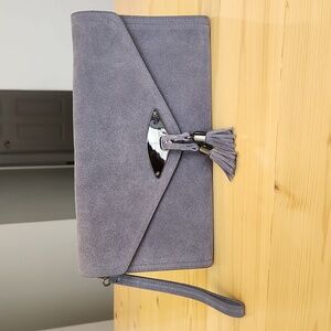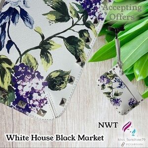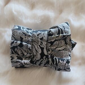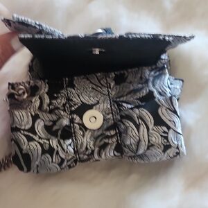 White House Black Market Black and Silver Floral Clutch