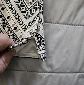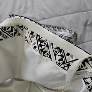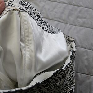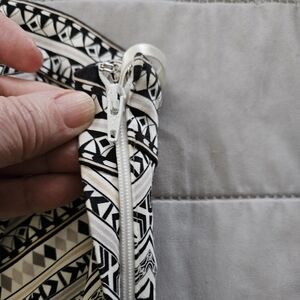 Stylish strapless top with a striking black and white geometric pattern. Perfect for a chic look. This is a stunning piece. pictures do not do justice. Satin lined w boning and grip. side hidden zipper