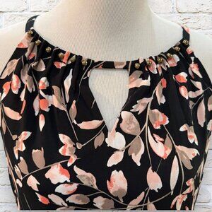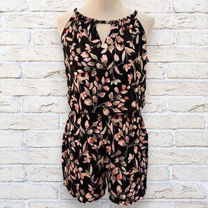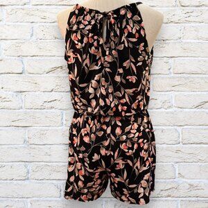 White House Black Market Black with Peach/Tan Floral Romper Size Small