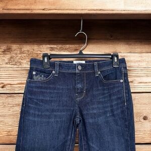 Elevate your denim collection with these White House Black Market "Blanc" Embroidered Jeans, style #111459, in excellent condition. These premium-quality straight-leg jeans feature beautiful embroidery detailing on the front right pocket and back right pocket for a subtle, stylish touch.